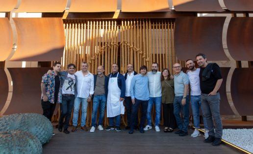 Tuvo Ángel otro momento de protagonismo en el congreso. Con el cóctel que ofreció en Aponiente a los congresistas. Algunos de esos embutidos (¡qué buena está la mortadela!), la cuajada de erizo y placton, el flan de huevas de lisa, las ostras con salsa de riñones, la tortillita de camarones, los tapaculos hechos con su técnica de sal o ese jarrete de atún (la cola del pescado) de potente sabor que incorporará el próximo año. Para terminar, con las luces apagadas, un brindis con las copas llenas de agua luminosa.