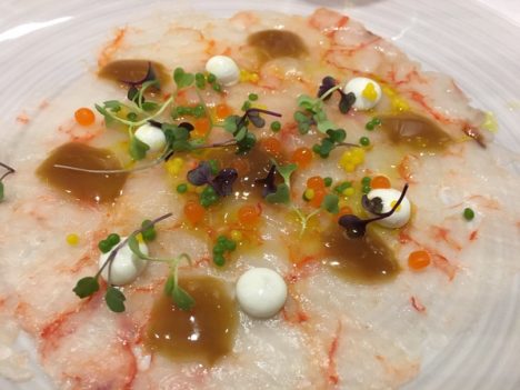 Precisamente en el espacio gastronómico de Tony García cenamos el día de nuestra llegada. Era muy tarde y Tony tuvo la amabilidad de montarnos una mesa. Tiene tendencia este veterano cocinero a recargar demasiado los platos. Muchos ingredientes y algunos contrapuntos dulces que no siempre encajan. Pese a ellos utiliza buen producto y tiene muy buena técnica. Lo mejor, el carpaccio de gamba roja que fue la tapa del día siguiente día. También la verduras en texturas que acompañaban a una corvina a la brasa y el steak tartar que Tony preparó en la mesa. Lo peor, con diferencia, el barroco postre de leche frita (amazacotada), sobre chocolate con aceite y sal más un helado de tomate.