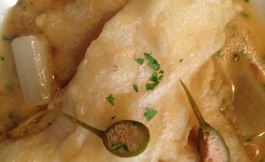Excelente cecina con pan con tomate; buenos boquerones en vinagre con un picadillo de tomate; ricas las gambas rebozadas en panko, con un suave y ligero alioli; buenos callos a la asturiana (aunque en la media ración ponen demasiada patata frita para una cazuela tan pequeña), y un salteado de angulas de monte al que se les olvidó ponerle sal, algo que por fortuna tenía solución. Lo más flojo, unas patatas bravas con salsa poco picante y que además recordaba más a una salsa barbacoa. Y lo más sobresaliente las croquetas de picadillo, gran especialidad de Martino, y que están en mi ranking de las mejores de España. Es curioso el altísimo nivel de croquetas que hay en Asturias.