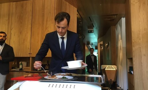 En mi lista anual de restaurantes de Madrid, la de 2017, lo situé en sexto lugar. Pero creo que sigue subiendo. A’Barra, la que fue sin duda la mejor apertura de 2016 en la capital, recompensado a los pocos meses con su primera estrella Michelin, no deja de crecer y en poco más de dos años se ha convertido en uno de los comedores imprescindibles de la ciudad. Todo gracias a un equipo de lujo, encabezado por el director del restaurante, Jorge Dávila, uno de los grandes profesionales de sala de los que disfrutamos en España. Qué hábiles fueron José Gómez (Joselito) y Cayo Martínez (La Catedral), cuando lo ficharon para Álbora y más tarde cuando le dieron la responsabilidad de organizar y dirigir este A’BARRA. Con Dávila, Juan Antonio Medina, que ha ido refinando aún más en estos meses esa cocina académica, de técnica impecable, que aprendió durante más de dos décadas en Zalacaín. Y completando el trío un sumiller tan competente como discreto, tan brillante como modesto. Valerio Carrera es de esos pocos profesionales que saben mucho, que siempre aciertan con las recomendaciones, pero que jamás van presumiendo de ello por la sala, abrumando a los comensales con sus conocimientos.