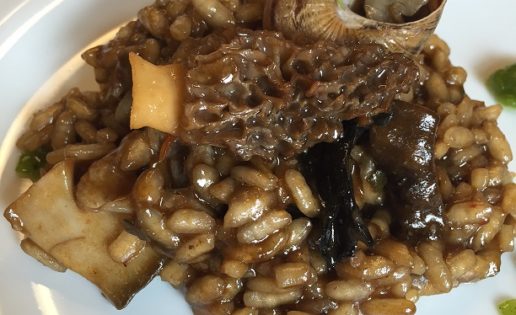 Estupenda también la pasta. Unos rigatoni rellenos de carne de Joselito con una salsa de chorizo nos retrotraen a los mejores espaguetis con chorizo de nuestra infancia. Buenísimos. Y el punto impecable de un arroz de montaña (foto que encabeza el post) que combina setas de temporada, incluidas colmenillas, y caracoles, con un fondo pleno de sabor nos acerca a los mejores arroces de campo mediterráneos. Los puntos exactos son muy importantes en la cocina de Medina. El mero, de gran calidad, con un picadillo de tomate, llega perfecto. Poco hecho, jugoso, terso y con todo su sabor intacto.