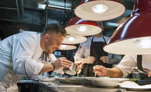 El restaurante gastronómico de la primera planta se llama SURIA. Allí, Aurelio Morales trabaja con producto de temporada y demuestra buena técnica. En mis distintas visitas le he ido viendo cada vez más asentado. Si la propiedad le deja trabajar con la libertad que merecen su currículo y su buen hacer puede hacer de Ramsés una de las referencias gastronómicas de la capital. Morales ha diseñado una carta que se mueve dentro de parámetros bastante clásicos buscando satisfacer a un público variopinto. En sus platos demuestra la buena escuela que tiene, con un acertado equilibrio entre clasicismo y modernidad, perfectamente acorde con lo que es este peculiar y complejo espacio. Además de técnica, el cocinero exhibe criterio en la selección y en el tratamiento de los diferentes productos que emplea. Elaboraciones muy bien presentadas, ligeras pero con sabor.