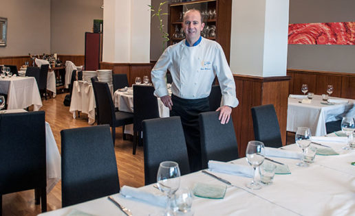 Despista un tanto la entrada al restaurante, una barra de bar modesto (con buenos pinchos, eso sí) por la que se accede al alargado comedor, de elegante minimalismo. Al cliente se le ofrece tanto carta como menú degustación. Este, compuesto por aperitivo, tres entrantes, pescado, carne y dos postres, al muy razonable precio de 55 euros.