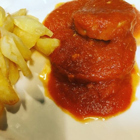 Pero además de la longaniza, en la carta están buena parte de esos guisos que son santo y seña de la cocina asturiana. Los callos, que se siguen elaborando con la receta de la Tataguya. El pote, que aquí hacen con verdinas, las cebollas rellenas, los calamares en su tinta… Y ese rollo de bonito del que les hablo tantas veces y que para mí representa el sabor del verano en Asturias. El de esta casa, que volví a probar el otro día, vale mucho la pena. Jugoso y con la salsa de tomate bien ligada. De los mejores que he comido, aunque algo por debajo de mis tres favoritos: Casa Belarmino (pueden ver el post anterior), Casa Consuelo y Nito, este último en Viveiro.