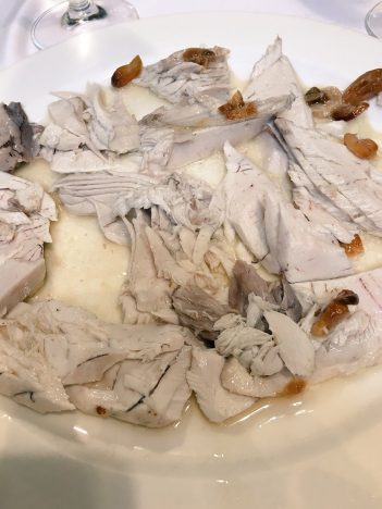Y en temporada, el bonito. En rodajas, bien a la plancha, bien guisado con tomate. En el ya comentado rollo. O su ventresca, que también probé en esta visita porque le dan un punto excelente. Juan la hace al horno en lugar de a la plancha, con lo que logra que quede más jugosa y con menos grasa de lo habitual. Una vez presentada al cliente, se limpia antes de servirla. Mas fácil de comer, magnífica. En mi caso, media ventresca de un bonito de considerable tamaño. Puro disfrute.