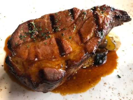 También toques exóticos en unos gambones a la brasa con una ajada con perlas de chile picante (muy poco picante). Cuando el cocinero se adentra en experimentos más o menos exóticos su cocina pierde interés con respecto al resto. Pero se aprecia (y se agradece) que tiene muchas ganas de avanzar y hacer cosas diferentes en una zona tan tradicional como es el interior de Lugo. Hay cocina y hay cocinero.