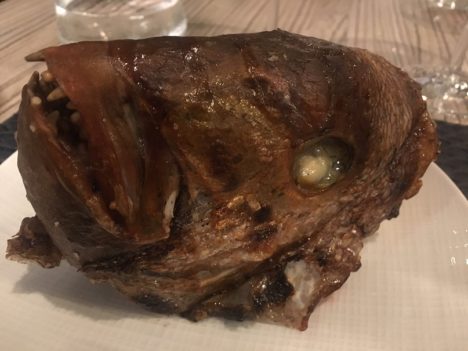 En cuanto al pescado, la pieza, de más de dos kilos, llega entera a la mesa. Allà se emplata, separando la gran cabeza, que se ofrece al cliente por si quiere disfrutar de los bocados que oculta. No ocurre como en Cataria, donde esa cabeza se diseccionarÃa para ofrecerle al comensal las distintas partes. Me gusta que al servir el pescado no se retire la piel, que tiene mucho sabor. Se acompaña con una escalivada. Si estos dos últimos platos marcaran la lÃnea del restaurante, el éxito estarÃa asegurado.