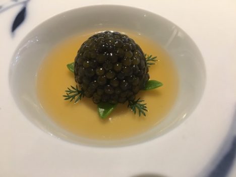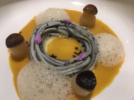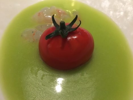 Poco que decir ya del excelente tomate nitro en gazpacho verde con quisquillas, o del ajoblanco con un ravioli de gambas que ahora se rellena de cabello de ángel y huevas de arenque, una explosión de sabor en la boca. Dos clásicos que quedarán en la historia de la cocina española. Mucho más recientes, pero con el mismo nivel de excelencia, la mora de caviar en un puchero de hierbabuena que se acompaña, al lado, con una lámina de lengua de vaca (plato que corresponde al año pasado), o esa anchoa cortada transversalmente para dejarla en filamentos acompañada con emulsión de trufa negra y un pequeño brioche, una de las mejores creaciones de 2016.