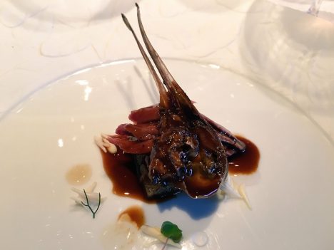 Podría parecer que ya no va más. Pero va. Porque la becada es otro lujo. Ya saben que soy becadoadicto. Y desde luego las que hace Joan, junto a las de Zuberoa, son mis favoritas. Este año, cabeza y pechuga sobre un brioche bañado en su propia salsa (bien intensa) y relleno de sus higadillos con sutiles toques de eucalipto y genciana. Gloria bendita.