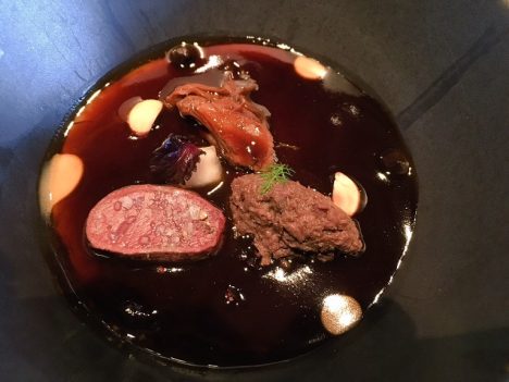 ¿Qué les puedo decir de EL CELLER DE CAN ROCA que no les haya dicho ya? Si las cuentas no me fallan, llevo catorce temporadas comiendo al menos una vez al año en esa casa mágica. He asistido a la evolución del restaurante desde aquel comedor anexo al bar de los padres en el barrio de Taialá, al trabajo para conseguir una tercera estrella que parecía que nunca llegaba, a las celebraciones por ser nombrados como los números uno del mundo, a la apertura del actual espacio en el que cocina, bodega y sala se reparten el protagonismo buscando la mayor satisfacción del cliente. He disfrutado siempre mucho en esa casa y espero seguir haciéndolo en lo venidero. En los últimos años, mi viaje anual a Gerona ha sido en diciembre, pocos días antes de la Navidad. Por un doble motivo. Para mí supone prácticamente el remate de la temporada. Y qué mejor sitio para hacerlo que en el que considero que es el mejor restaurante de cuantos conozco. Y además, pocos cocineros trabajan la caza al nivel que lo hace Joan Roca por lo que estas son las mejores fechas para disfrutarla en El Celler. En esta ocasión, como broche de un brillantísimo menú, han sido cuatro platos: sopa de faisán, pato azulón, liebre y becada. Una maravilla.