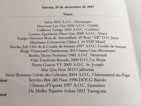 De los vinos, me remito al listado de lo que bebimos. Ojo, fue un poco de cada uno. Perfectamente seleccionados para cada plato del menú. Vinos de diez todos ellos, pero que cuando te los explica personalmente Pitu Roca cobran otra dimensión. Como en otra dimensión se mueve todo El Celler en su conjunto. Mi número uno.