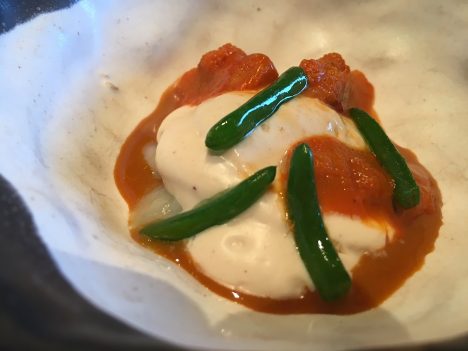 Sólo hay un pequeño bajón en todo el menú. Las angulas con anguila y kimchi, en un conjunto excesivamente terroso y algo insípido. Todo lo contrario que la caballa al vapor de amontillado. Se vierte el vino sobre el fondo caliente del recipiente y el pescado absorbe sus aromas. Al lado un caldo de sardina a la brasa con levadura y una gota de amontillado. Llevan ya tiempo los Roca con este juego de vapores de vino y pescado que funciona de maravilla.