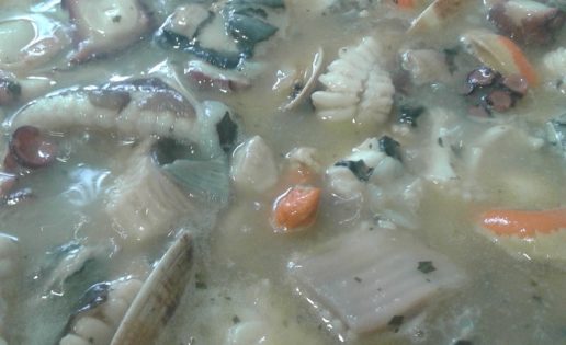 El capítulo principal estuvo en Bueu. Una mañana lluviosa, perfecta para animarse a comer un guiso contundente como el que nos esperaba. El sitio, un estupendo restaurante de producto de esa localidad pontevedresa: ESTRELLA. Allí, Andrés Pérez y su hermano ofrecen el mejor producto local. Ya saben que Bueu es el concejo del que depende la isla de Ons, donde se capturan excelentes pulpos, nécoras y percebes. Precisamente, el Estrella lo fundó la abuela de Andrés, una percebeira de Ons, junto a su hija Estrella.
