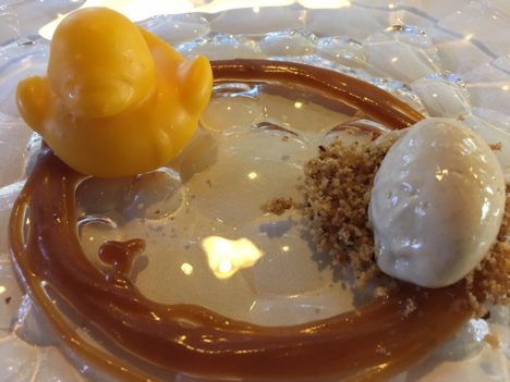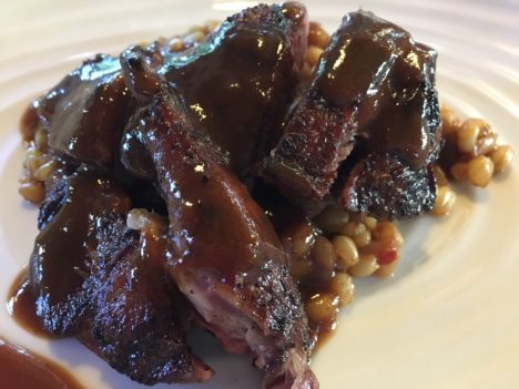 Logrados los ravioli de rabo de ternera (un detalle reconocerlo), muy delicados, con una salsa bordelesa (y no bordalesa como figura en la carta) de mucho nivel. Trabaja bien las salsas del cocinero seguntino como comprobamos a continuación con la que acompaña, perfectamente reducida, a un pichón hecho en robata. Pichón con un punto de más en el horno. Estupenda, eso sí, la milanesa de espelta que lleva como base.