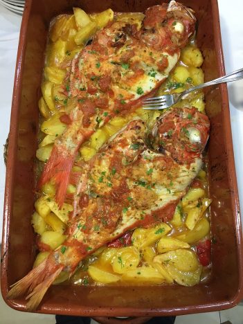 Y luego, dos palometas rojas (lo que en Asturias llamamos virrey) al horno. De considerable tamaño. Estupendas. Lo mismo que, una vez más, las patatas que las acompañaban. Lástima que ese día había comido en Solla, porque me hubiera tomado bastantes más. Los postres, con menos interés. Para beber, Louro do Bolo, esa godello de Rafa Palacios que nunca falla.
