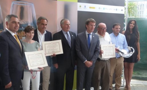 Los vinos que se sirven en la comida son los que han participado en una cata para elegir el mejor albariño del año en la denominación de origen. No se presentan todas las bodegas y se echa en falta a algunas de las punteras, pero es una buena representación, que da la medida del nivel de la añada. En la cata, ciega, participan catadores locales y algunos periodistas especializados venidos de fuera. He tenido el honor de que me invitaran a participar junto a destacados colegas como Juancho Asenjo, Andrés Proensa o Ramón Francàs, de La Vanguardia. El sábado se catan los 65 albariños (tienen que ser cien por cien albariño) preseleccionados por los técnicos de la D.O. y se elige a los catorce mejores, que pasan a una cata final el domingo. Añada complicada la de 2013, pese a lo cual hay un nivel medio bastante notable, sin llegar a sobresaliente. El ganador final ha sido el Abadía de San Campio, de esa buena bodega que es Terras Gauda, en O Rosal. Un albariño José María Fonseca, su presidente, recogió el galardón. El segundo fue otro O Rosal, Quinta de la Erre. Y el tercero Lagar da Costa, del Salnés. Pueden ver a los ganadores en la foto junto a Juan Gil y Núñez Feijoo.