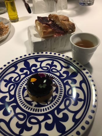 Yolanda y Juanjo tuvieron el detalle de abrir un lunes, su día de cierre, para acoger a varios de los asistentes a la entrega de premios. Allí estaban, en distintas mesas, entre otros, Ricard Camarena, Juan Luis García, Isaac Loya, Nacho Solana o Esther y Tomás, del Alameda de Fuenmayor. En la mía, el jurado de los premios. Una prueba de fuego para cualquier cocinero. Para todos el menú degustación (45 euros) de esa semana (el 522, ya que los numeran), con un par de añadidos.