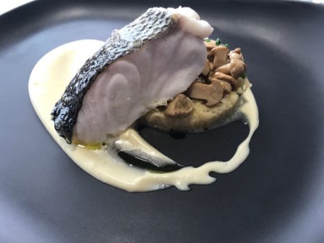 En las cremas y sopas una opción era la del cocido leonés, pero nos pareció un poco fuerte y optamos por la versión de la tradicional sopa de trucha. Un acierto. Con el pescado en distintas texturas y un potente y elegante caldo de ajo y kimchi. En los apartados de pescados y carnes había también varias opciones, atractivas sobre el papel. Carrillera de bacalao con migas de botillo, pez mantequilla ajoarriero, lenguado a la meunier con polenta, pitu guisado o papada con habitas. Sin embargo, el cocinero nos ofreció probar dos platos que entrarán en breve en el menú: muy bien el tataki de atún rojo, con un intenso y fresco jugo de aceituna, y muy flojo, el fallo de la noche, un ravioli de pato con carabinero, seca la pasta y seco y excesivamente concentrado el relleno de pato. Un plato a revisar.