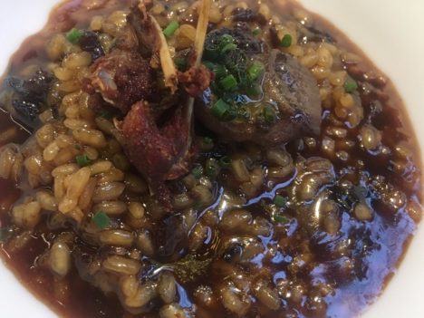 Pinchazo con una lubina de estero con tendones, bimis y pies de ternera. Pese a la presencia de la casquería, resulta un plato insulso. Con todos mis respetos para Ángel León y su elogiable campaña de sostenibilidad, estas lubinas de estero me resultan escasas de sabor. Todo lo contrario de lo que ocurre con los raviolis de liebre, donde vuelve esa intensidad que es uno de los hilos conductores del menú. La masa, muy ligera, envuelve una royal de liebre. Alguna vez les he contado que pocos cocineros la hacen tan buena como los hermanos Torres. Y así sigue siendo. Y terminamos la parte salada con otro sobresaliente, un arroz de tordos. Granos al dente, que no duros, y un fondo cargado de colágeno en el que, otra vez, el sabor es protagonista. No se puede rematar mejor esta parte del menú.