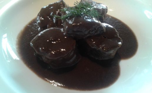 César domina como pocos en Madrid (la escuela de Camba es siempre una garantía) la caza y la lamprea. Lo he podido comprobar hoy mismo. Mi amigo Manuel Villanueva, gallego ejerciente aunque resida y trabaje en Madrid, y “lampreoadicto” como yo, me preguntó hace unos días que dónde nos podían preparar unas lampreas que le enviaban desde su tierra. No tuve ni que pensarlo: vamos a Lakasa y le pedimos a César que nos las prepare. Todavía tengo en la memoria, a pesar de lo cargada que está, aquel menú sólo de lamprea que nos preparó a un grupito de afortunados cuando aún estaba en Balzac. Y César no ha fallado. A la mesa, cinco amigos disfrutones en esto del comer. Y vaya si hemos disfrutado. Manuel aseguraba que de las muchas lampreas que ha comido en su vida, pocas como esta de hoy. A la bordelesa, guisada con su sangre. El guiso impecable, ligero y suave, el pescado en su punto, jugoso y nada seco, los sabores perfectamente armonizados… César le añade puerro a la salsa para reducir su potencia, aunque hoy ha rebajado la cantidad habitual. Y la acompaña con un arroz cocido con el jugo de la propia lamprea. Para mí también ha sido una de las mejores que recuerdo, junto a la que me preparó Pepe Solla en Poio ahora hace un año.