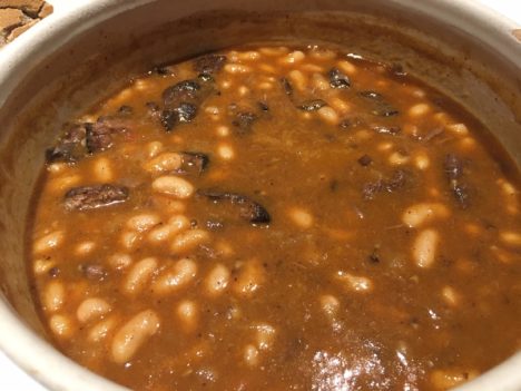 Siguen dos platos de esos que algunos denominan brutales. No sé con cual quedarme. Mejor dicho, haría una comida completa sólo con ellos dos. Porque el arroz con conejo y setas es un espectáculo, pero no le van a la zaga las alubias de Saldaña con liebre. Qué barbaridad. De las alubias se queda la cazuela en la mesa y dan ganas de rebañar hasta la última judía, pero ya nos han advertido que aún queda mucho menú y no nos gustaría quedarnos sin probar algo. Una pena.