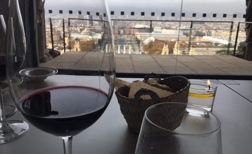 Antes del menú, un aperitivo a base de vermut, elegido entre la decena de marcas que ofrecen en un carrito, casi todos ellos catalanes. Y para acompañarlo, una buena selección de tapas y raciones tradicionales que van desde aceitunas rellenas de anchoas de La Escala hasta croquetas de cocido y de espinacas o un notable surtido de embutidos de La Garrocha con pan de cristal con tomate. Este aperitivo lo tomamos en la terraza del restaurante disfrutando de esas vistas espectaculares de la Ciudad Condal.