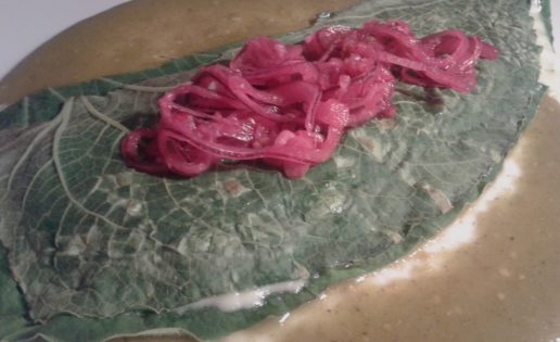 Está muy claro que no es una moda. Simplemente la constatación de que los madrileños responden positivamente a las cosas bien hechas y a la autenticidad. PUNTO MX ha aportado a Madrid una forma diferente de entender la cocina mexicana. Gusta este restaurante porque los que conocemos México encontramos esos sabores únicos que enganchan, y los que no, descubren una cocina llena de sabores, texturas y aromas. Sin embargo, a pesar del indudable éxito logrado, de esa merecida estrella Michelin que ha llegado este año, de los premios como el concedido por este blog, de los llenos diarios, Roberto Ruiz y sus socios no se han dormido en los laureles. Y siguen dando pasos adelante. Por un lado, la apertura de ese gran espacio que es el Salón Cascabel, todo un acierto en su planteamiento y en la comida (y bebida) que allí se ofrece. Por otro, creando nuevos platos e incorporando ingredientes que hasta la fecha eran difíciles de encontrar en España. Roberto lleva ya un tiempo trabajando en su propio huerto para conseguir esos productos frescos imprescindibles en la genuina cocina de su país. Y ahora muestra con orgullo los tomatillos verdes, los elotes, los quelites, los nopales, diversos tipos de chiles e incluso esa maravilla vegetal que es la hoja de acuyo, más conocida como hoja santa.