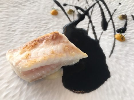 La calidad de producto es innegable. Lo vuelvo a comprobar con un lomo de lenguado (de grosor importante y perfecto de punto) a la mantequilla negra, una salsa cítrica que recuerda a una meuniere. El gallo de corral con un potente mole y trufa negra, al estilo de una royal, es uno de los aciertos del menú. Muy bueno. Tan intenso que apenas permite apreciar el sabor del conejo con foie y cacao que le sigue. O se cambia el orden o se prescinde de este último plato, que tampoco aporta demasiado.