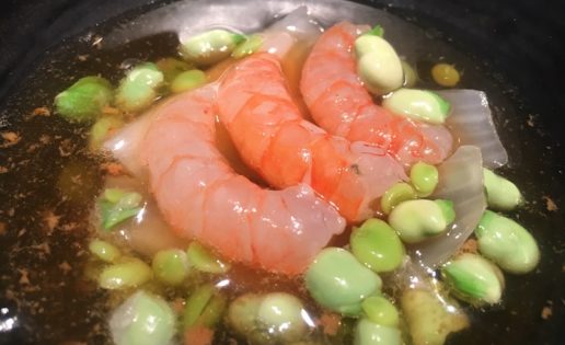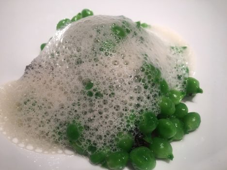 Por esas circunstancias del destino he tenido, en el plazo de una semana, dos comidas en Santceloni. Una, de trabajo, más formal y más reducida en cuanto a platos. Otra, con un amigo, disfrutando a fondo con el menú y con una larga sobremesa. Entre ambas, sólo tres coincidencias, lo cual demuestra el fondo que tiene la cocina de Velasco, técnicamente impecable y siempre ceñida al mejor producto de temporada. Una de esas coincidencias fue precisamente uno de los mejores platos que elabora el cocinero segoviano estos días: los guisantes del Maresme con caldo de pollo, bacón y haba tonka. Pocos chefs trabajan guisantes y habitas con la delicadeza y la elegancia con que lo hace Óscar. Por eso otro plato fantástico fueron las quisquillas con habitas tiernas (foto que encabeza el post). La excelencia de una cocina perfectamente plasmada en tan sólo dos elaboraciones.
