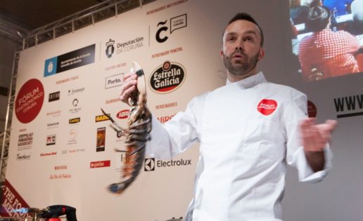 Como les he comentado, el Fórum Gastronómico Coruña 15 ha sido un éxito. Cada día me gustan más estos congresos de formato pequeño, concentrados en temas y zonas concretas sobre las que explorar y debatir. Cuando además una ciudad, en este caso La Coruña, se vuelca en apoyo del encuentro todo es mucho mejor. La gastronomía no puede ni debe cerrase a unos pocos, debe abrirse a la calle, poner la cocina al alcance de la gente y desmitificarla. Para ello ha jugado un importante papel la zona llamada Cook Trends, un espacio de cocina callejera con buen nivel culinario, en este caso muy gallego. Allí estaban los chicos de Abastos 2.0 (probablemente la mejor oferta), Arbore da Veira, Benboa (con su bocadillo de pulpo), Nacho Rodríguez de Gastronomanía (finalista en el premio cocinero del año, con sus ahumados), la panadería Pandelino, una furgoneta con hamburguesas de ternera gallega, otra con pizzas de ingredientes gallegos… Todo un mundo para acercar la buena cocina al público. Llenazos diarios y largas colas en algunos puestos.