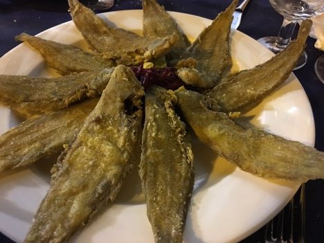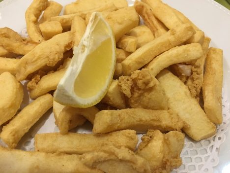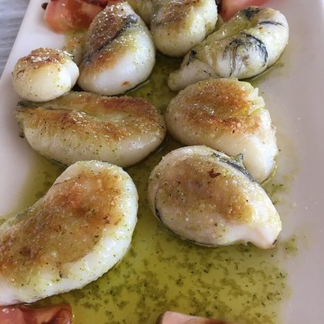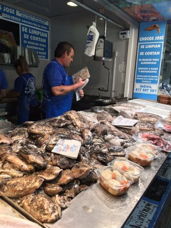 Huelva fue elegida “capital gastronómica” para este año 2017, un título en el que ya saben que no creo en absoluto. Esta capitalidad no se corresponde para nada con el verdadero nivel gastronómico de las ciudades elegidas y sí más bien con criterios económicos y de marketing. Un buen negocio para algunos. En Huelva capital apenas me salen más de tres restaurantes que merezcan la pena. Si eso justifica una capitalidad… Otra cosa es el producto onubense, excelente y muy poco conocido fuera de allí. Una visita al Mercado del Carmen sí que justifica el viaje. Un espectáculo, sobre todo en las pescaderías. Empezando por los chocos, que dan nombre a los habitantes de la ciudad y que incluso tienen puestos en el mercado exclusivamente dedicados a ellos. Pero además, excepcionales gambas blancas, langostinos, acedías, lenguados, atunes, langostinos, corvinas, caballas, chirlas y tantos y tantos productos de unas aguas especialmente ricas. Estos días no verán coquinas. Están en veda, aunque se las ofrecerán en algunos restaurantes. Proceden de furtivos o de otras latitudes. Mejor no pedirlas. A todos esos pescados y mariscos añádanle las salazones de Isla Cristina y otros lugares de la provincia, los jamones de la sierra, y los productos de unas huertas muy productivas. En estas fechas, los tomates rosa, especialmente los que provienen de Río Tinto, una auténtica delicia.