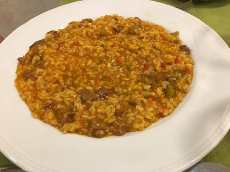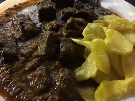 Pero lo que más me gustó con diferencia de este Portichuelo fue el guiso de sangre con tomate. No está en la carta, pero mi amigo, cliente habitual de la casa, lo pidió. Y lo tenían. Creo que casi siempre lo hacen. Estupendo. Uno de esos guisos de siempre que se están perdiendo. En esta casa mantienen la tradición. Y hay que probarlo. Como tendré que probar en una próxima visita otro guiso, este de oreja, del que Manuel, el propietario, nos habló charlando con él ya con los cafés en la mesa. Ganas tuvimos de pedirlo a pesar de todo. Pero así tendré que volver pronto.