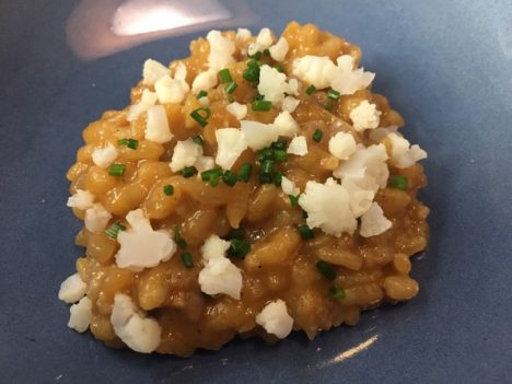 Aguachile y escabeche, tan potentes, hacen que pase un tanto desapercibido el tuétano vegetal y marino con “beurre blanc” de crustáceos, plato delicado pero de poca intensidad. Desequilibrado de vinagre otro escabeche, el que acompaña a una ventresca de atún en adobo con uva moscatel, y de nuevo confusa la ostra del delta del Ebro con jugo de caza y col. Una lástima estos altibajos que deslucen un poco el buen trabajo del cocinero. Buena la langosta mediterránea a la brasa con jugo de sus corales, rodeada por un refrito de judías verdes perfectamente prescindible porque resulta algo pesado y no aporta nada a la langosta. Sí aportan las galeras a un estupendo arroz cremoso con blanquet (embutirdo) y coliflor encurtida, que aporta un buen contraste.