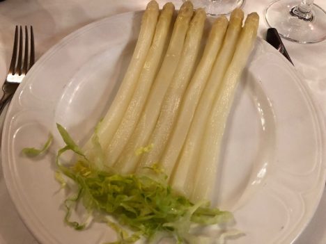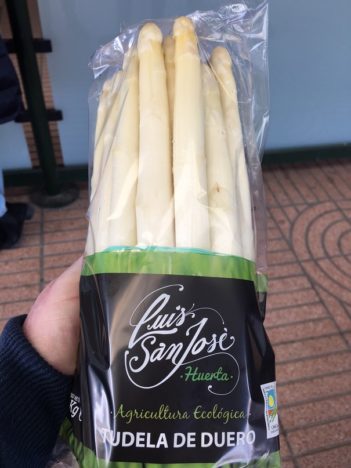Pero en Tudela de Duero no sólo hay grandes vinos. Esta es zona de huertas. Y de todo lo mucho y bueno que producen, la mención de honor es para sus espárragos. Extraordinarios. Este año, como el tiempo ha sido tan invernal, vienen un poco retrasados por lo que estos de mediados de abril son aún algo pequeños de tamaño, pero con gran sabor. Sólo por comerlos merece la pena el viaje hasta Tudela de Duero. Lástima que su temporada sea tan corta. Simplemente cocidos con sal, perfectamente pelados, se deshacen en la boca con un maravilloso sabor entre dulce y amargo. Nada que envidiar a los de la Tudela navarra. Ferrán Adriá ha sido uno de los grandes defensores de estos espárragos. Si pasan por allí, además de comerlos, pueden aprovisionarse en alguno de los puestos callejeros donde los venden estos días. Yo compré algunos a un gran precio: 6 euros el paquete de kilo.