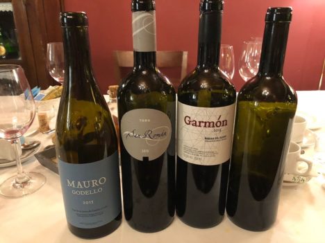 Con la comida, algunos vinos recién embotellados de Mariano García, todos de 2015. La citada godello (qué buena está y cuánto le queda aún en la botella), perfecta con las verduras, Garmón, San Román (mi Toro favorito) y Mauro. Este último aún sin etiquetar. Qué grandes vinos.