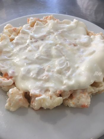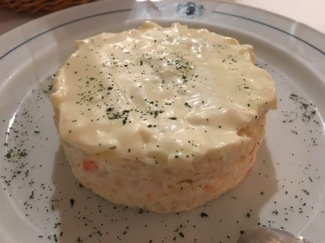 DONALD. Siempre vuelvo a por su ensaladilla. Tan buena al menos como la de Mariscos Emilio. Aunque esta no es de gambas. Los guisantes y la zanahoria acompañan a la patata, bien cubierto todo de mayonesa. Muy notables también sus callos.