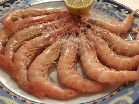 Nos dejamos recomendar, porque la oferta que nos hace verbalmente Paco resulta abrumadora. Y además él afirma que todo está buenísimo. Lo cierto es que lo asegura con razón, porque todo lo que va llegando a la mesa está muy rico. Empezando por unas gambas blancas de primera que abren el festín. Muy buena también la ensaladilla, que como tantas en Sevilla, es de gambas. Patata machacada, bien ligada con la mayonesa y la textura del marisco como contrapunto. A la altura de algunas de mis favoritas sevillanas como puede ser la de Mariscos Emilio, que también es de gambas.