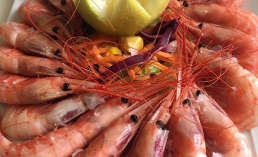 Aunque hay una carta, Rafael se acerca a la mesa con una lista de sugerencias entre las que resulta difícil elegir. Empezamos con unas quisquillas de Motril cocidas (foto que encabeza el post). Calidad de producto y punto perfecto. Para comer muchas. Apuramos también la temporada del tomate rosa, que nos preparan en una ensalada con aguacate granadino muy fresca y agradable.