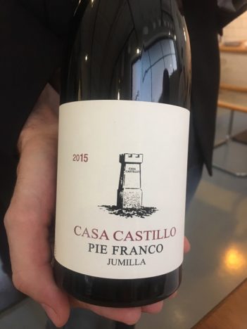 Como prepostre una agradable créme brulée de algarroba, helado de plátano a la brasa y gel de whisky que da paso a un correcto chocolate especiado en distintas texturas, y a una versión personal del paparajote muy agradable. Buena selección de vinos a cargo del sumiller Fran Saura. De todo lo que nos ofreció, me quedo con ese Casa Castillo Pie Franco 2015, gran monastrell de Jumilla.