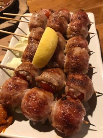 Relacionado con la casquería, uno de los capítulos más interesantes es el de los “kushiyaki”, brochetas hechas en tradicionales parrillas de madera, un instrumento que va desapareciendo de las cocinas japonesas. Las hay de bacon con enoki y con tomate, que están buenas, pero las imprescindibles son las de casquería de pollo. Desgraciadamente esta vez no tenían las de piel crujiente con salsa yakitori, pero sí las de cartílagos del bicho, buenísimos. Otra opción son las mollejas del pollo, también en brocheta.