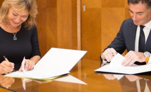 Picture: Olga Algayerova (l), UNECE Executive Secretary and Umberto de Pretto (r), IRU Secretary General, signing the MoU on the digitalisation of the customs transit procedure under the TIR Convention.