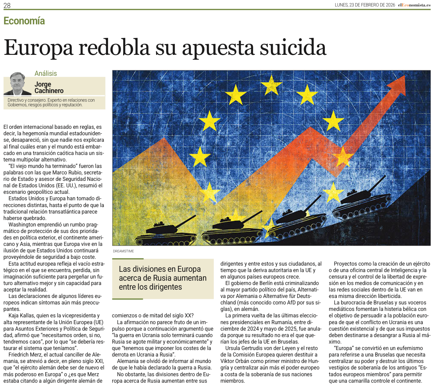 La burocracia de Bruselas y sus voceros mediáticos fomentan la histeria bélica con el objetivo de persuadir a los europeos de que el conflicto en Ucrania es una cuestión existencial y de que sus impuestos deben destinarse a desangrar a Rusia al máximo.