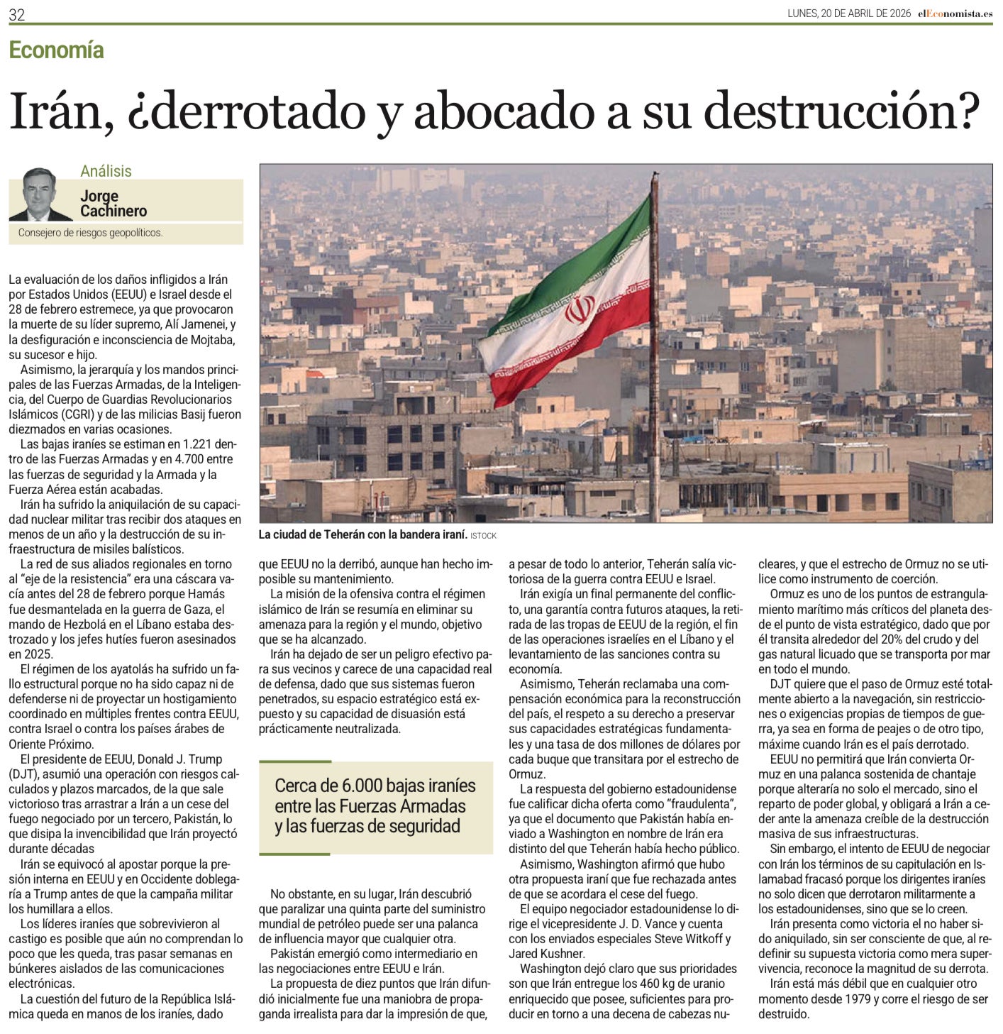 Irán ha dejado de ser un peligro efectivo para sus vecinos y carece de una capacidad real de defensa, dado que sus sistemas fueron penetrados, su espacio estratégico está expuesto y su capacidad de disuasión está prácticamente neutralizada.