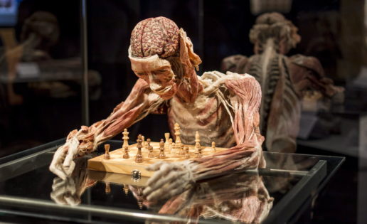 La imagen de arriba es de Aleksander Kozminski para la agencia Efe. Corresponde a la obra titulada «Male chess», de la exposición «Body Worlds and The Cycle of Life», en Wroclaw, Polonia