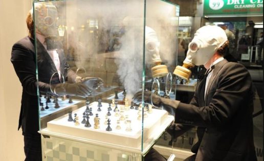 Ya hemos visto alguna vez por aquí juegos de ajedrez originales y extravagantes, incluso con ratones disecados, pero lo de las piezas asfixiadas en una cámara de gas en un concepto insólito, que además cuesta un dineral: más de 60.000 euros. La casa Purling London, especializa en piezas y tableros de lujo, ha presentado esta idea diseñada por el artista libanés afincado en Londres T. Raymonzrek.