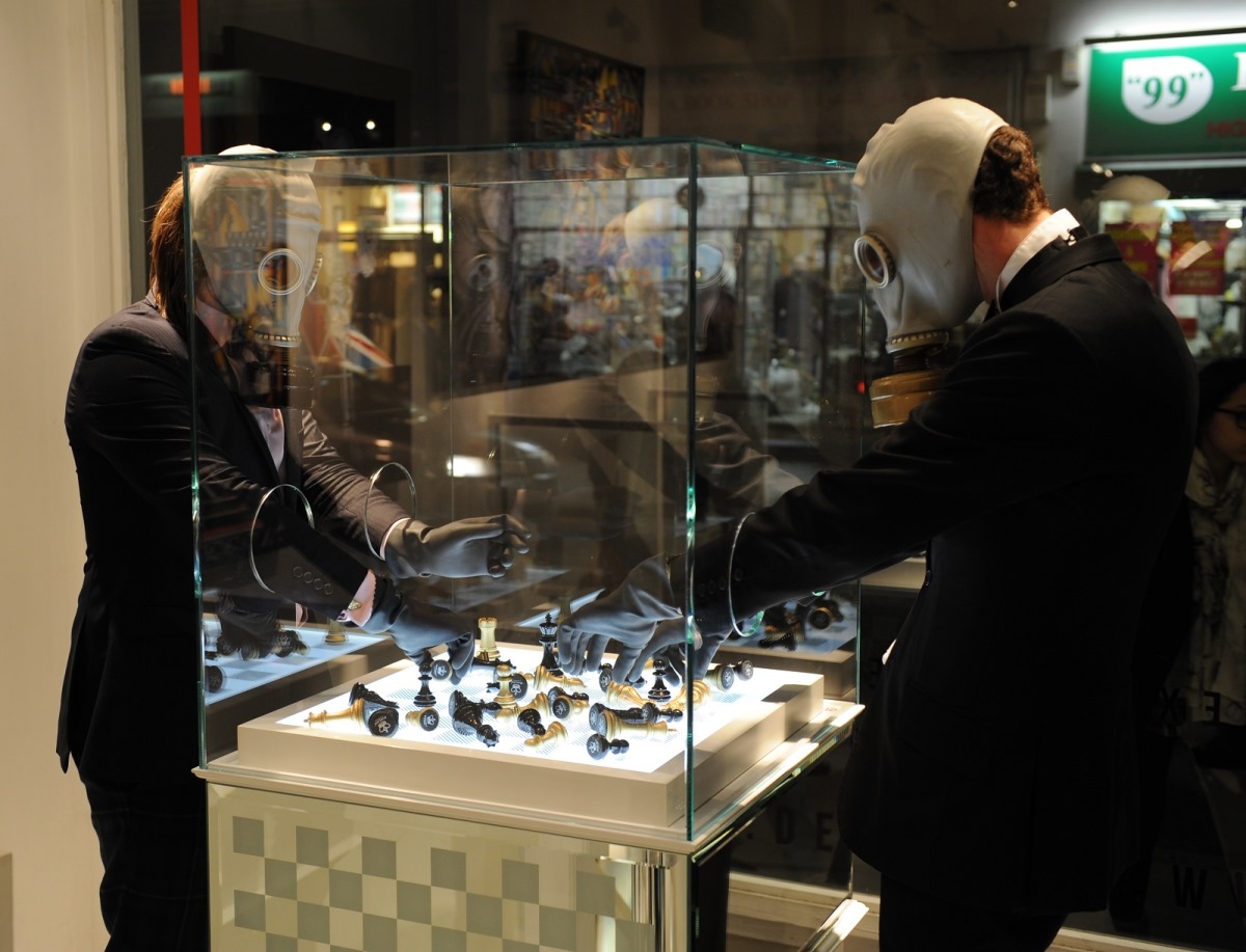 Ya hemos visto alguna vez por aquí juegos de ajedrez originales y extravagantes, incluso con ratones disecados, pero lo de las piezas asfixiadas en una cámara de gas en un concepto insólito, que además cuesta un dineral: más de 60.000 euros. La casa Purling London, especializa en piezas y tableros de lujo, ha presentado esta idea diseñada por el artista libanés afincado en Londres T. Raymonzrek.