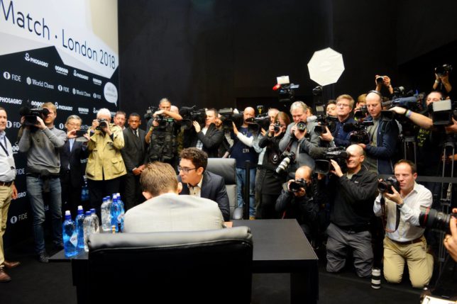 «Fabiano está jugando bien en la tercera partida», dice Jonathan Rowson, «creando desequilibrio, manteniéndose sólido y esperando su momento». Otro Jonathan, Tisdall, añade que, después de perder la segunda partida, el rostro de Caruana reflejó por un momento el dolor que debía de sentir por dentro, pero que enseguida volvió a mostrar su habitual «aspecto imperturbable de determinación». Eso es algo que no se le puede negar a «Fabi».