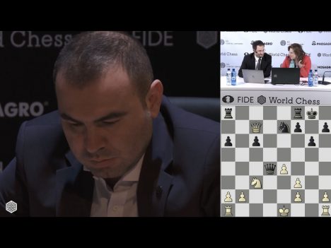 Shak Mamedyarov porfió durante horas para derrotar a Sergey Karjakin, pese a conducir las piezas negras. El azerbayano va a por todas en este torneo y su facilidad para conseguir ventaja en una española con g6 es destacable. Con otro enemigo, habría acabado mucho antes, pero el ministro de Defensa es duro de roer y gastó unas cuantas vidas antes de caer definitivamente.