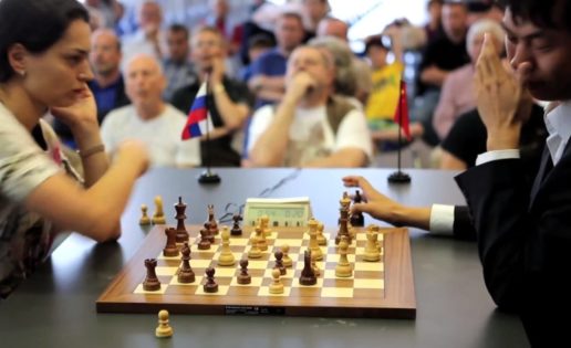 Este vídeo muestra con una claridad descarnada cómo encaja un gran maestro el KO de un jaque mate inesperado. Al chino Wang Hao, número uno de su país, le falta caer sobre la lona y escupir sangre. El impacto que recibe su cerebro es evidente. Alexandra Kosteniuk, duodécima campeona del Mundo, Chess Queen en Twitter, golpea por sorpresa en la casilla g2, al pillar al su rival con la guardia baja por efecto de la velocidad del juego y de la glotonería, con consecuencias fatales.