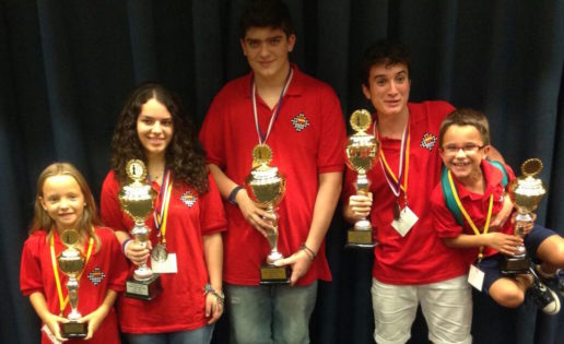 Javier Habans Aguerrea acabó cuarto, con 7 puntos, en la categoría sub 8, mientras que Valentina Plamenova Radkova terminó quinta, con 6,5 puntos, en la misma franja de edad, en categoría femenina. Todos ellos posan orgullosos en la imagen que encabeza esta entrada.